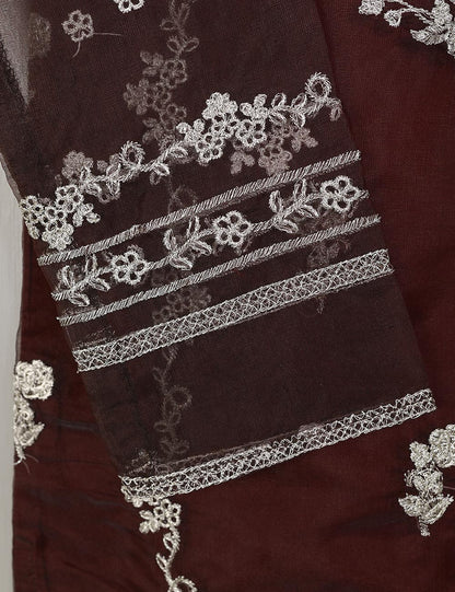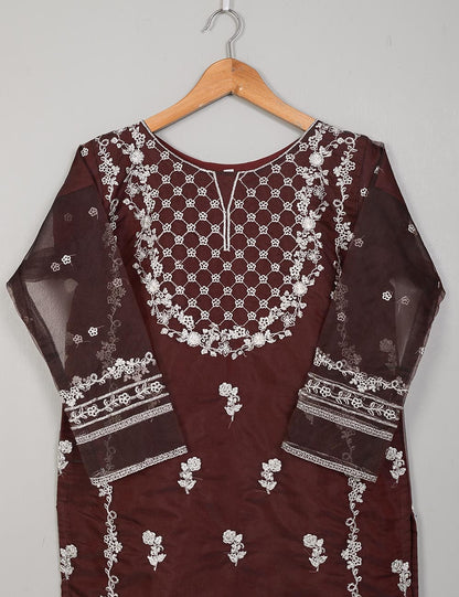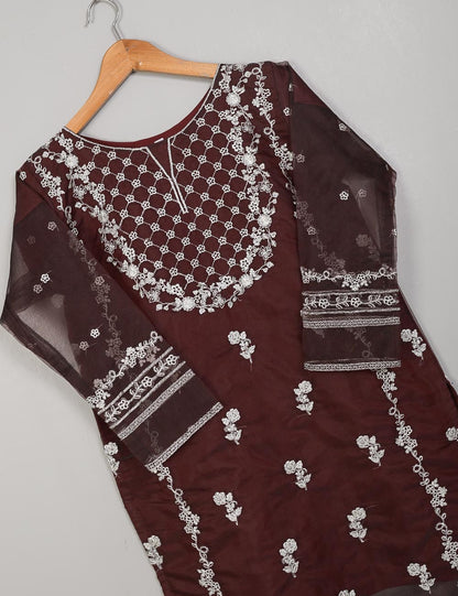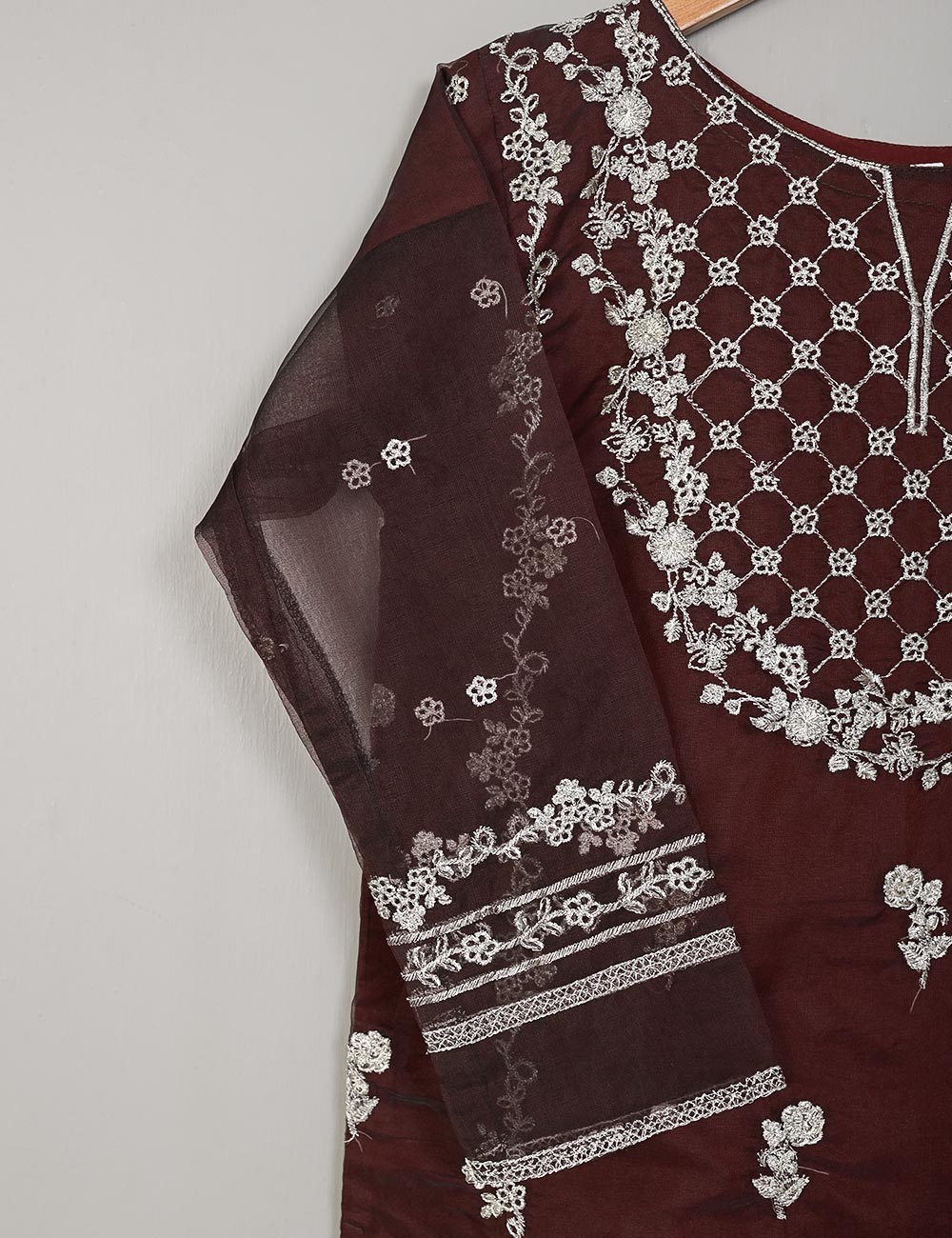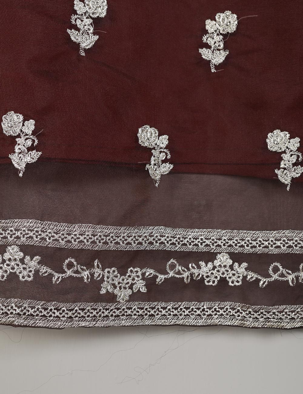 TS-216A-Maroon - Organza Embroidered Stitched Kurti