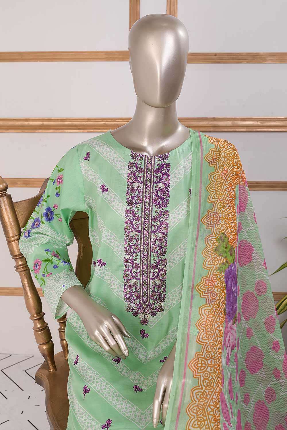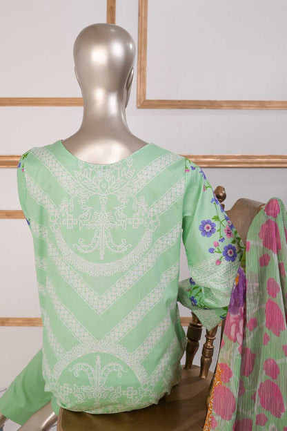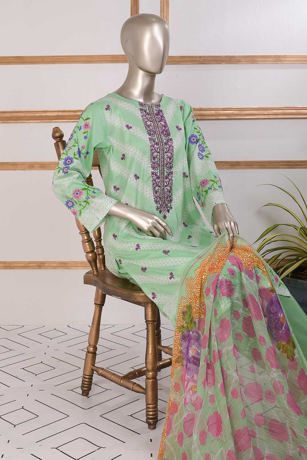 3 Pc Unstitched Embroidered Lawn Dress with Chiffon Printed Dupatta