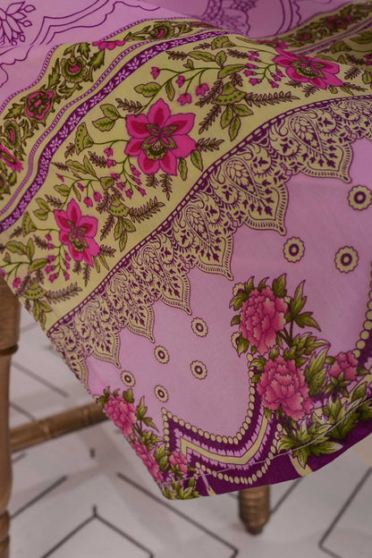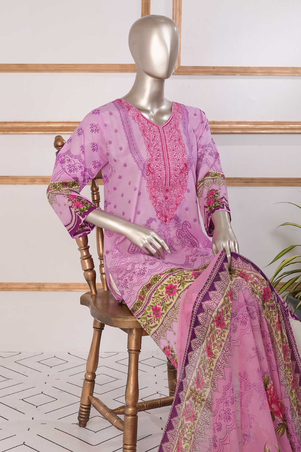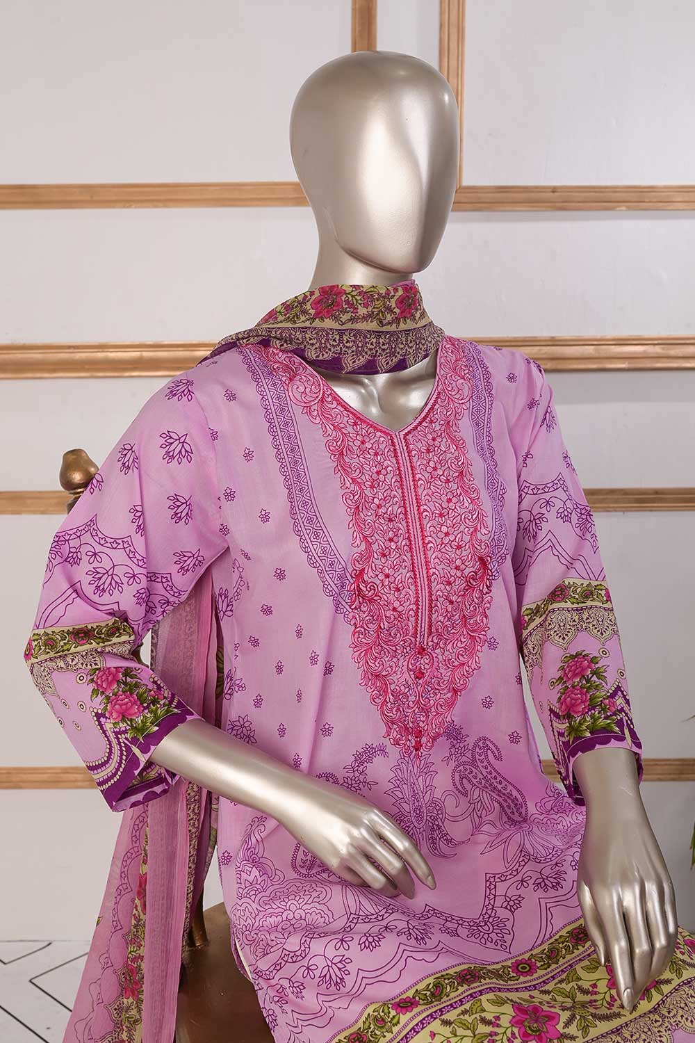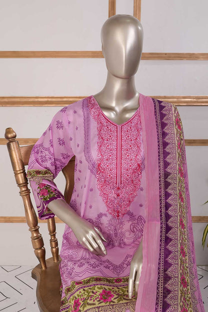 3 Pc Unstitched Embroidered Lawn Dress with Chiffon Printed Dupatta