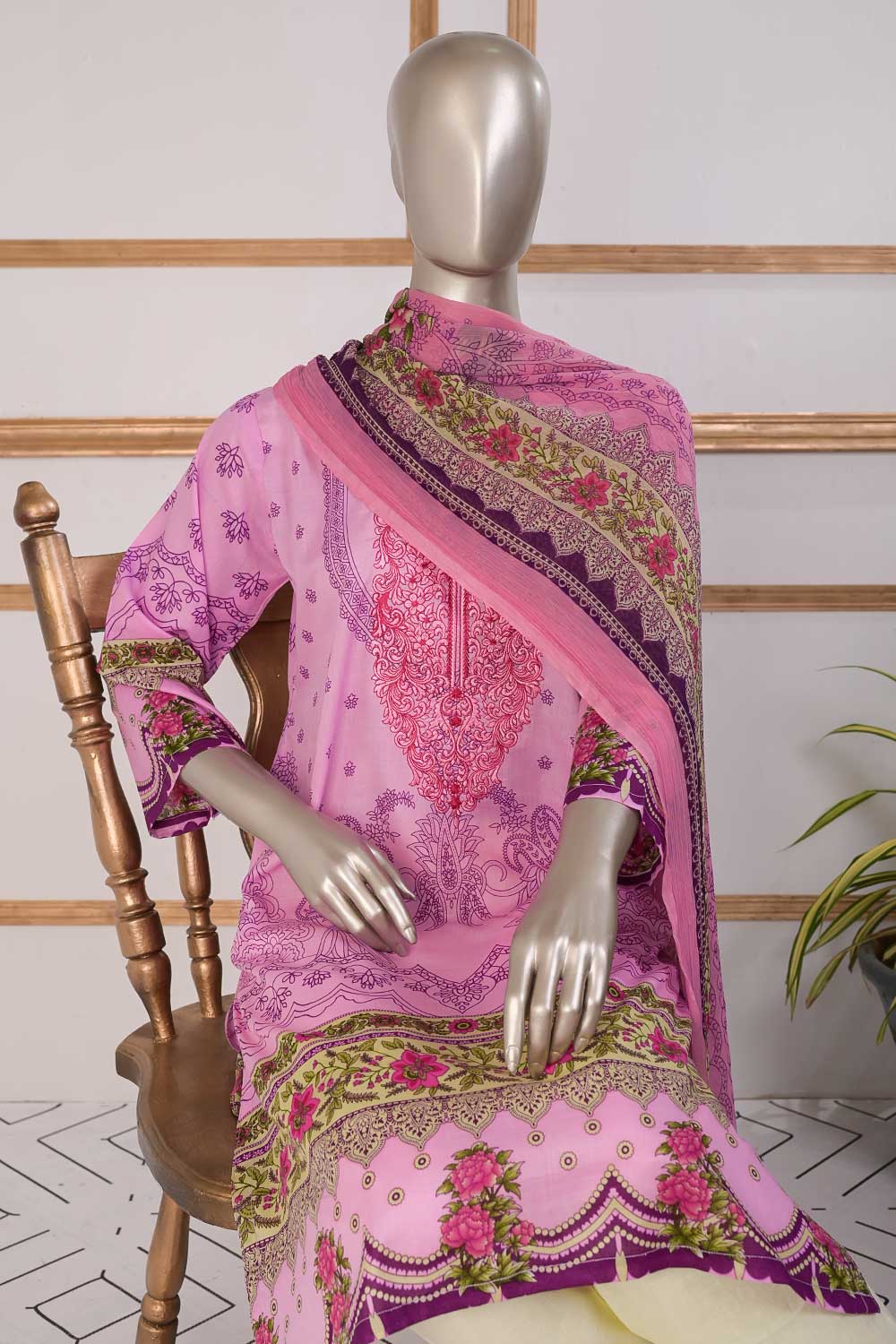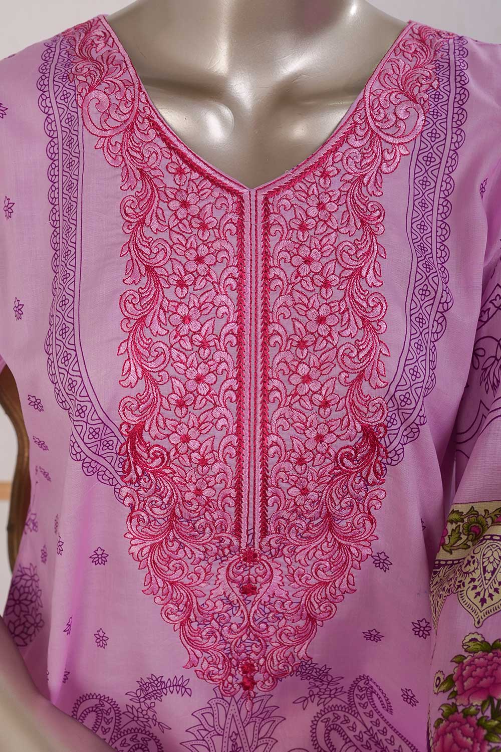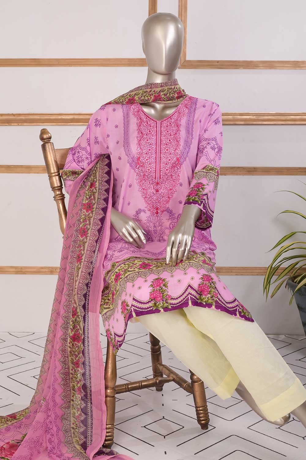 3 Pc Unstitched Embroidered Lawn Dress with Chiffon Printed Dupatta