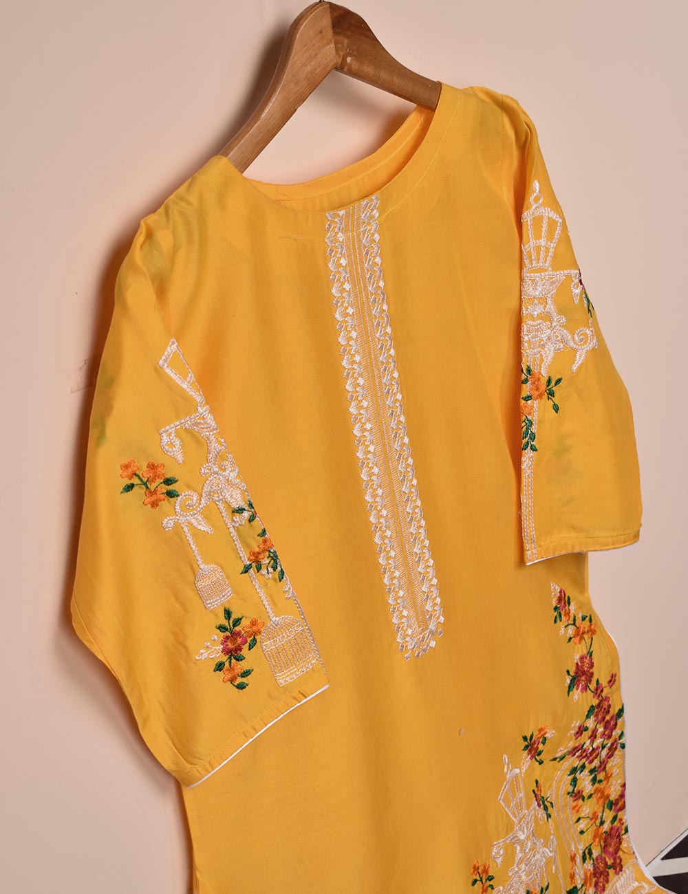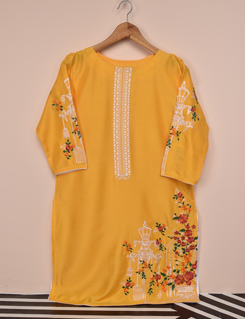 Tehwaar Winter Linen Embroidered Stitched Kurti - Phoenix (TW-07B-Yellow)