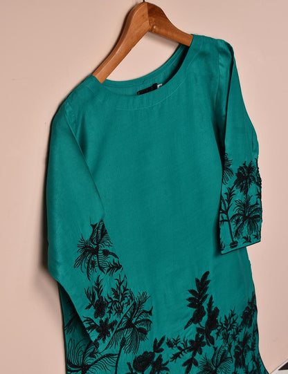 Tehwaar Winter Linen Embroidered Stitched Kurti - Aurora (TW-08A-Turquoise)