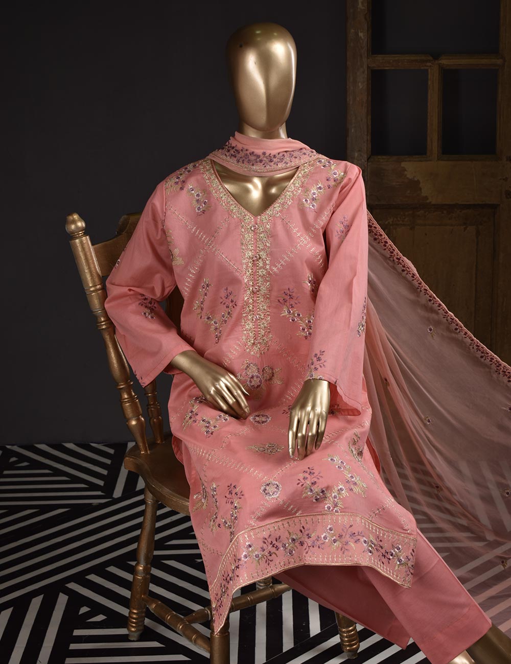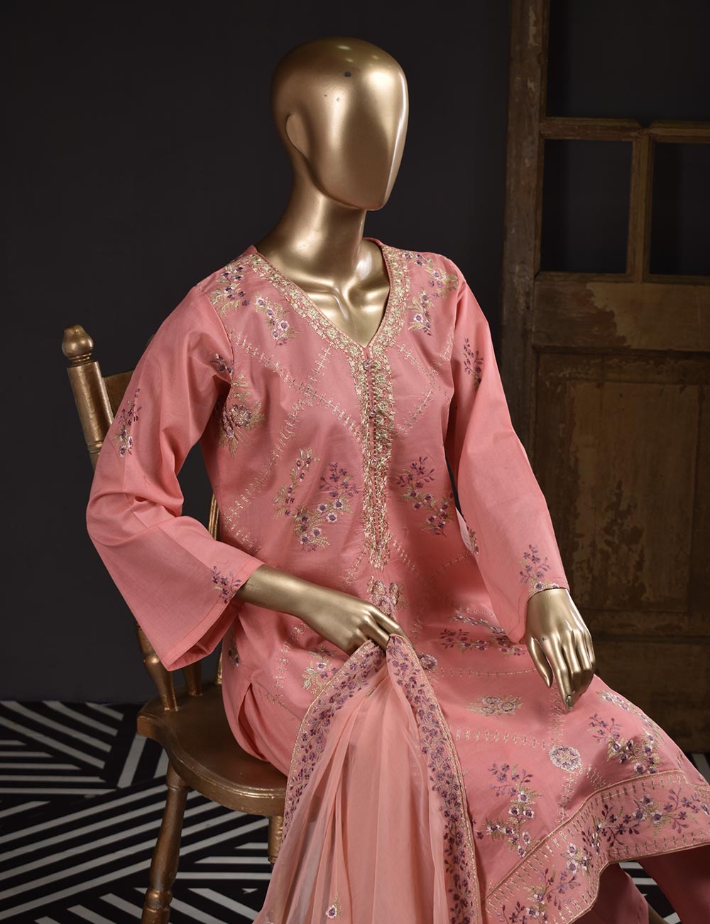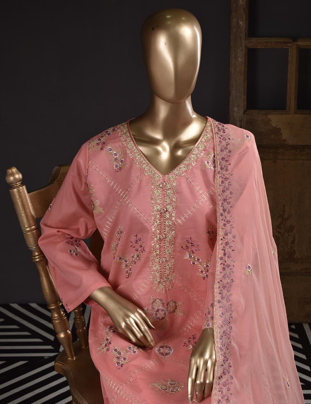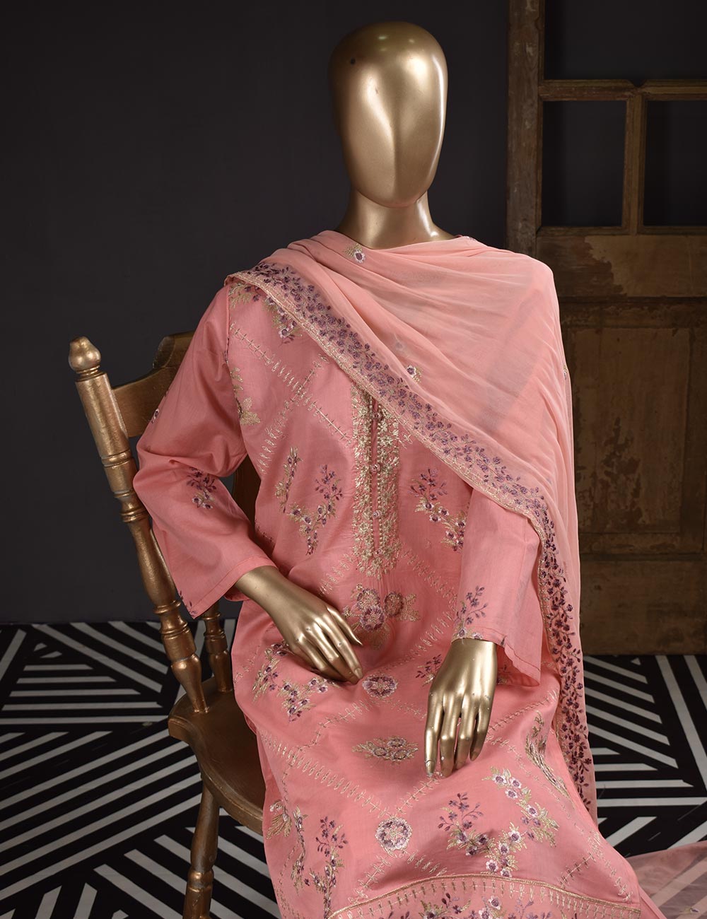 3 Pc Unstitched Embroidered Lawn Dress with Chiffon Embroidered Dupatta