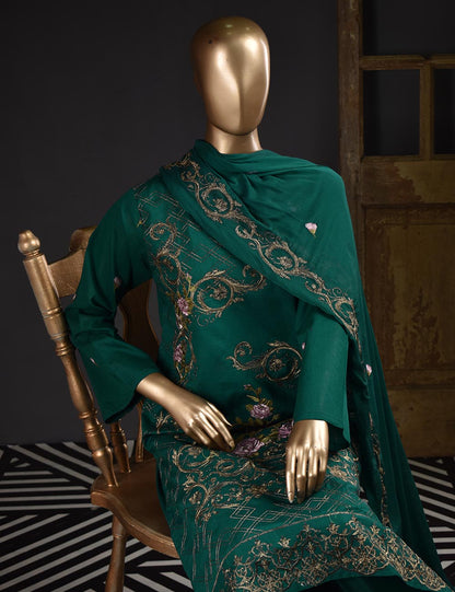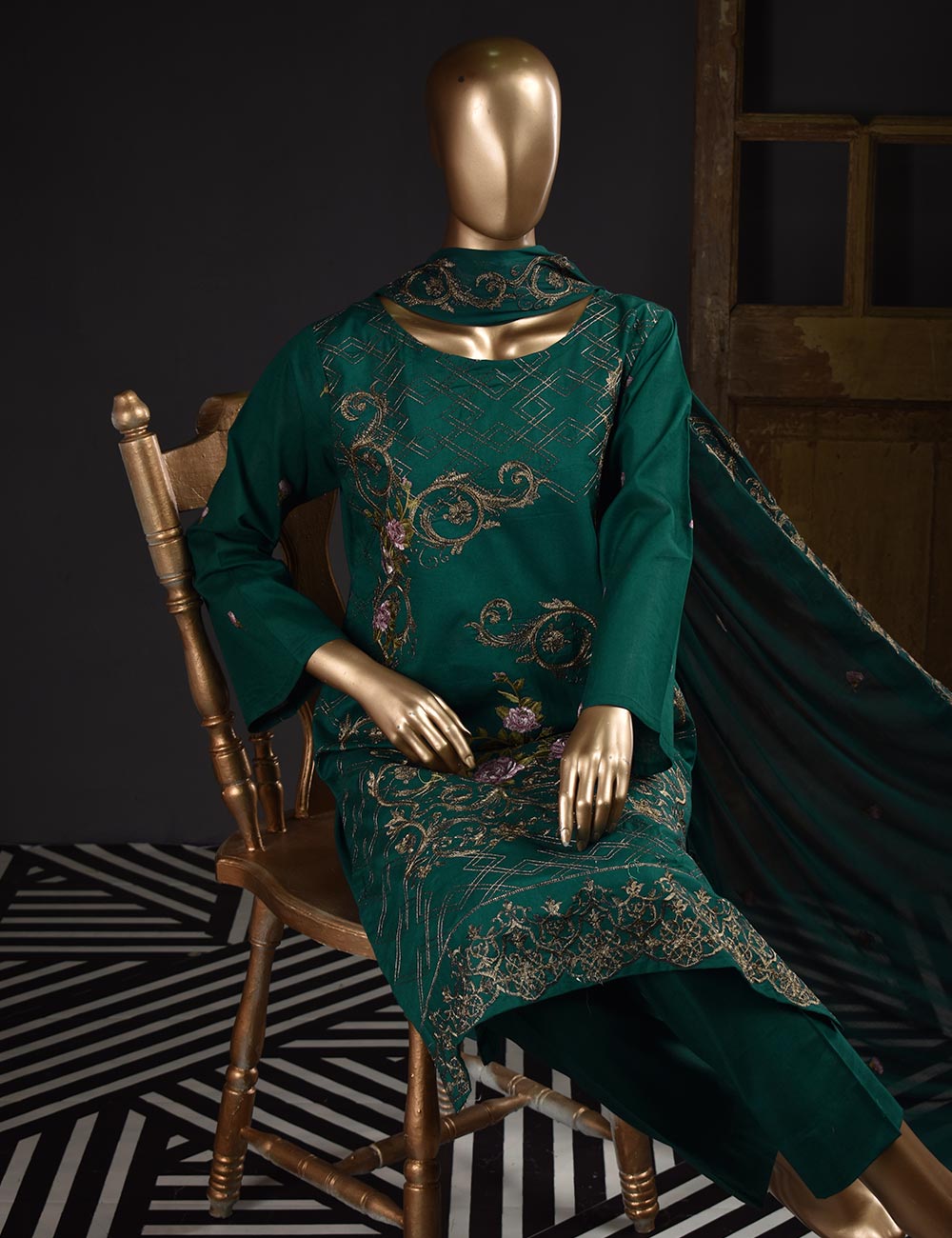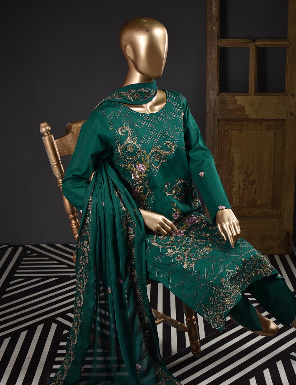 3 Pc Unstitched Embroidered Lawn Dress with Chiffon Embroidered Dupatta - Estonia (ZEB-5B)