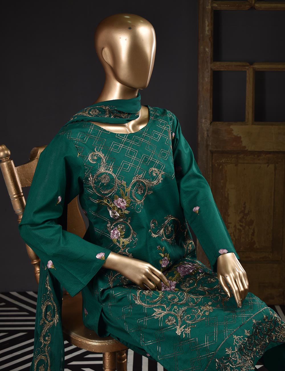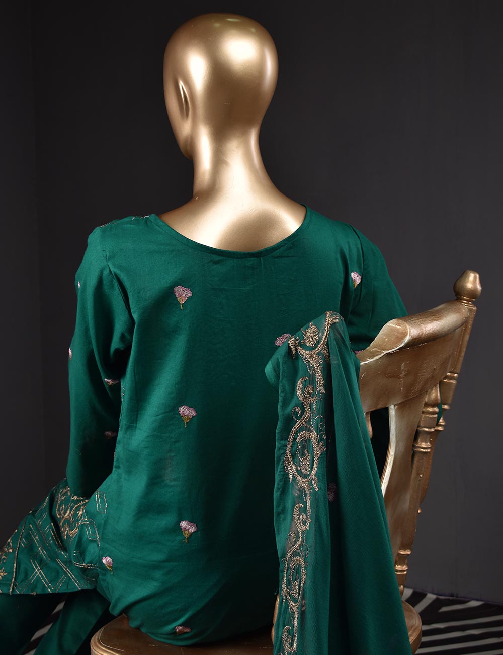 3 Pc Unstitched Embroidered Lawn Dress with Chiffon Embroidered Dupatta